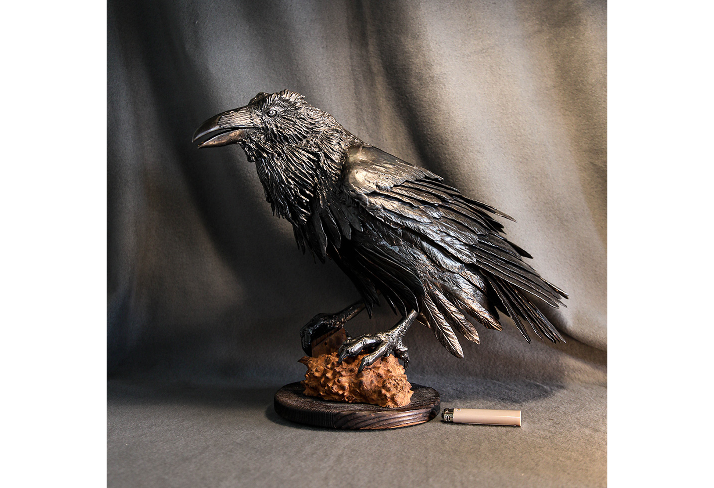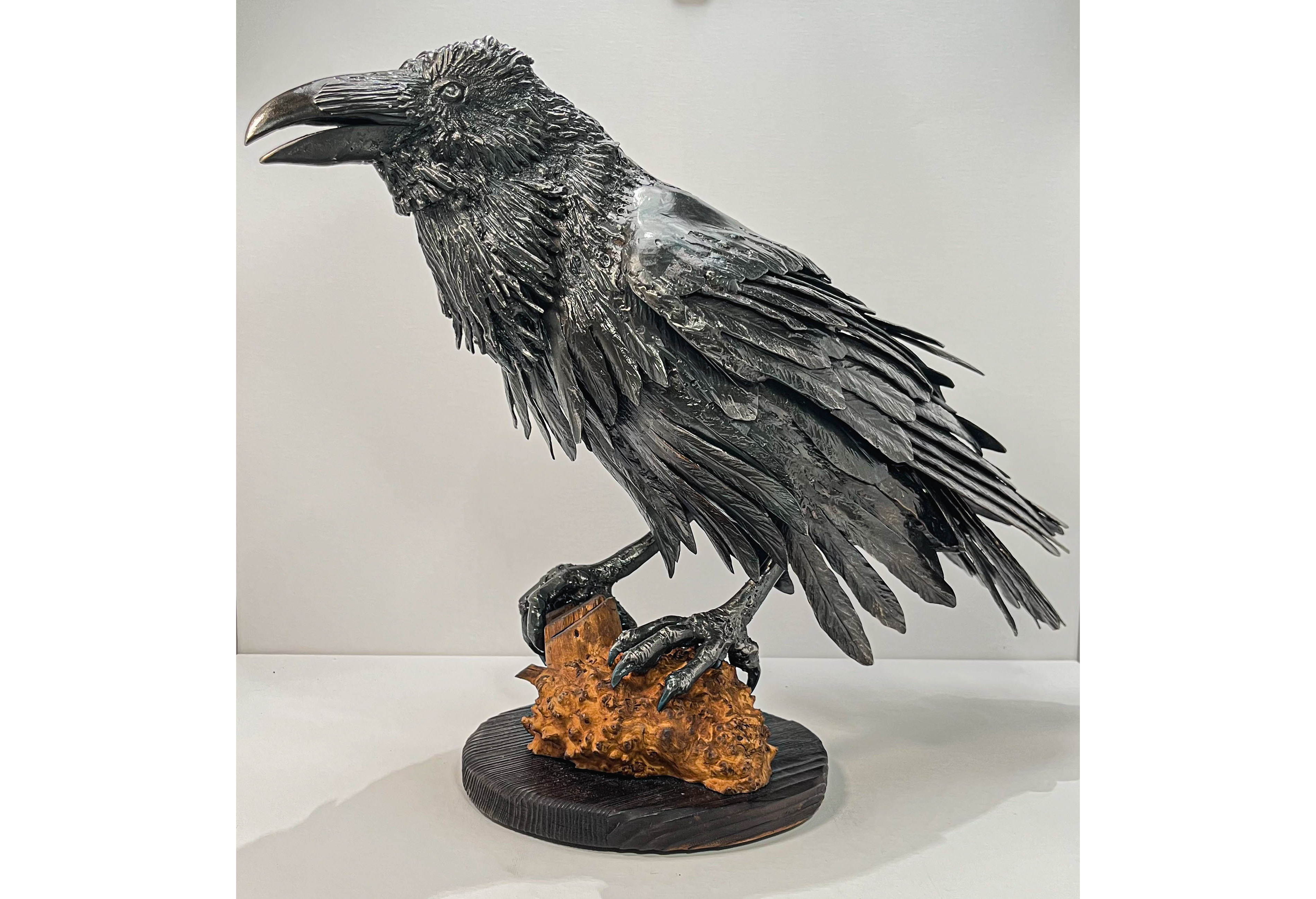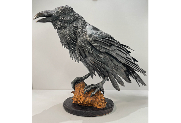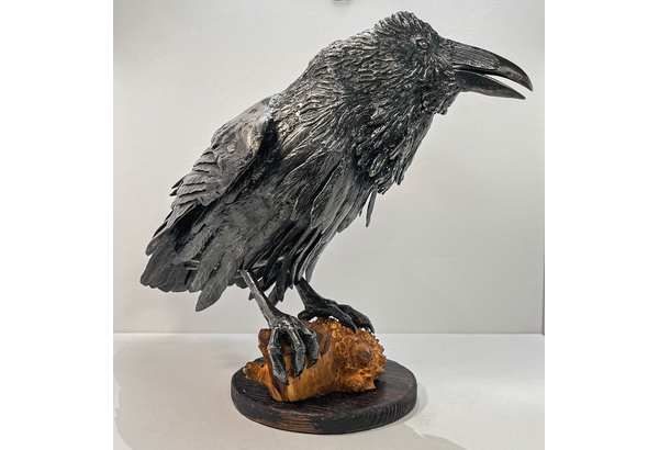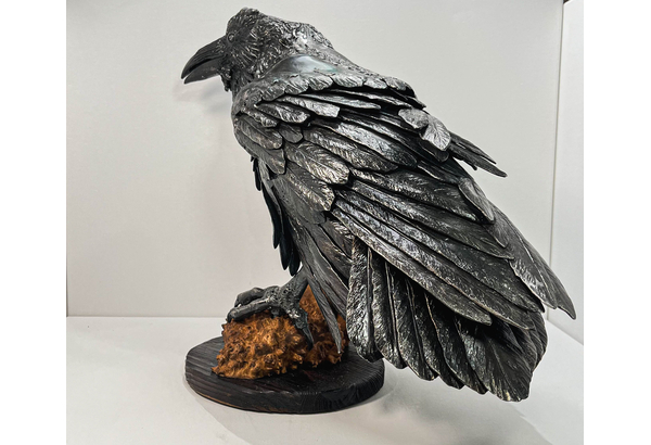 Iron Raven. Handcrafted from pieces of forged iron. Forging and welding is done by the famous blacksmith Nikolai Mikhailov, his works are in demand among collectors of iron birds and horses.