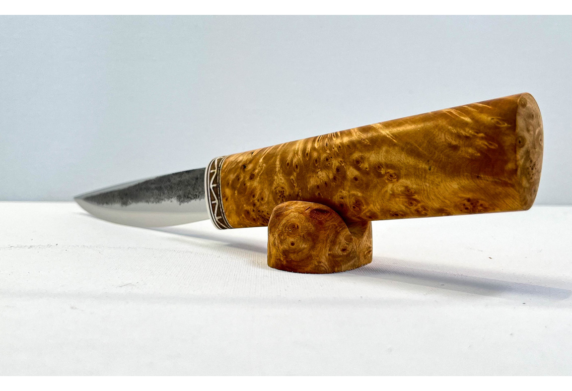 The sheath is made from a bull’s tail wrapped in a dry birch liner.